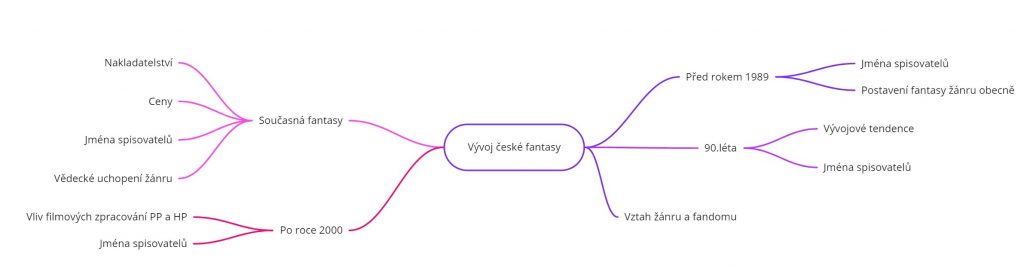 Aktuálně zpracovávám téma vývoje české fantasy jako jednu část kapitoly mé disertační práce. Není mým primárním cílem vytvořit zevrubný popis a charakteristiku tohoto tématu, ale je zapotřebí nastínit nejdůležitější milníky vývoje.