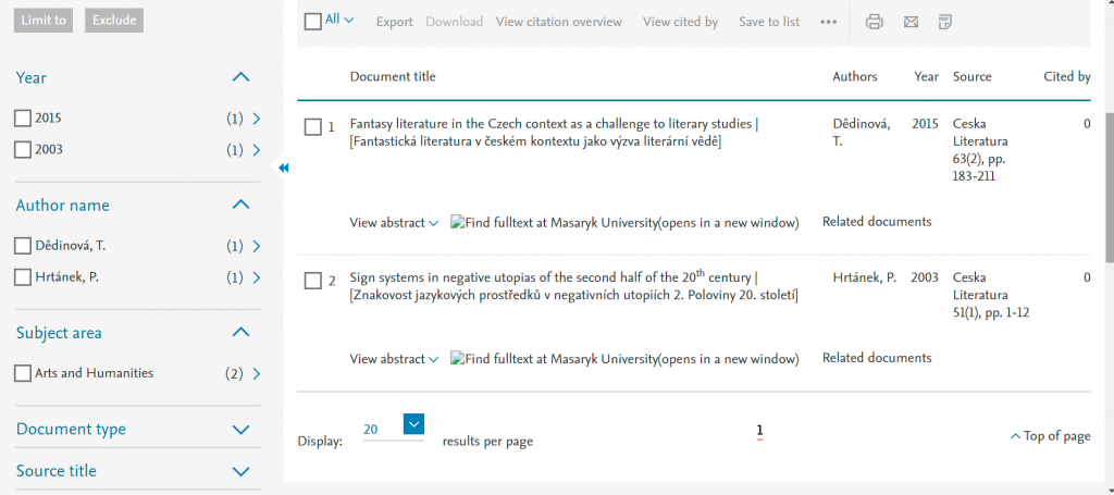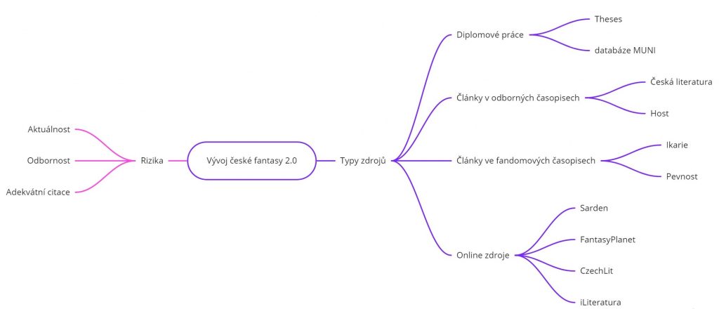 Vzhledem k tomu, že se jedná o českou literární historii, nepředpokládám, že na Scopusu naleznu relevantní informace. Kvůli jazykovým odlišnostem (hlavně kvůli termínu fantasy, který se v anglosaském prostředí chápe trochu jinak než u nás) jsou i klíčová slova odlišná. Pro vyhledávání v odborných databázích budu využívat Theses (českou databází kvalifikačních prací) a ResearchGate.